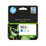 HP Cartucho de tinta Original 963XL cian de alta capacidad. Tipo de tinta de color: Tinta a base de pigmentos, Tipo de cartucho de tinta: Alto rendimiento (XL), Rendimiento de impresión de página con tinta de color: 1600 páginas, Volumen de tinta de color: 22,77 ml, Colores de impresión: Cian, Cantidad por paquete: 1 pieza(s)