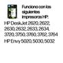 Los cartuchos de Tinta HP 304 funcionan con: HP DeskJet 2620, 2622, 2630, 2632, 2633, 2634, 3720, 3750, 3760, 3762, 3764 HP Envy 5020, 5030, 5032 |