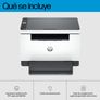 Contenidos de caja Impresora multifunción HP LaserJet M234d; Cartucho de Tóner Original HP LaserJet negro previamente instalado; Cubierta antipolvo; Cable de alimentación; Guía de referencia; Póster de configuración; Folleto reglamentario; Cable USB.